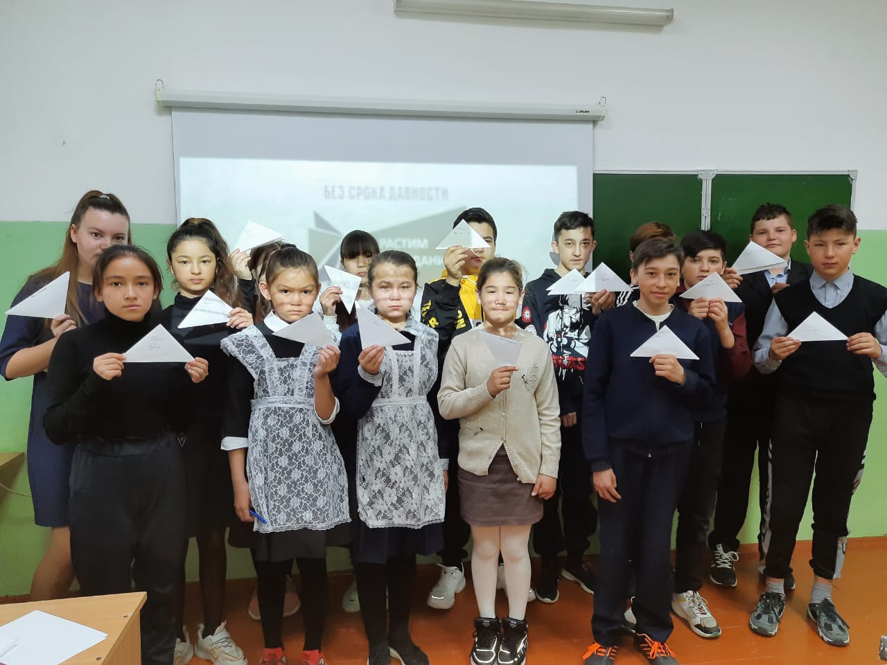 В конце урока ученики написали письма-треугольники в будущее "Нельзя забыть": для чего необходимо сохранить и знать историческую правду о преступлениях нацистов и как важно сохранять мир!!!