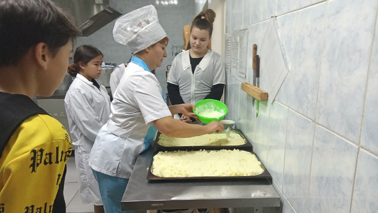 Сегодня, 20 октября, обучающиеся 8 класса приняли участие в акции "Один день с шеф-поваром", посвященный профессиональному празднику поваров - Международный день повара. Шеф-повар нашей школы Сагитова Альбина Аликовна показала мастер-класс по приготовлению блюда "Запеканка".
